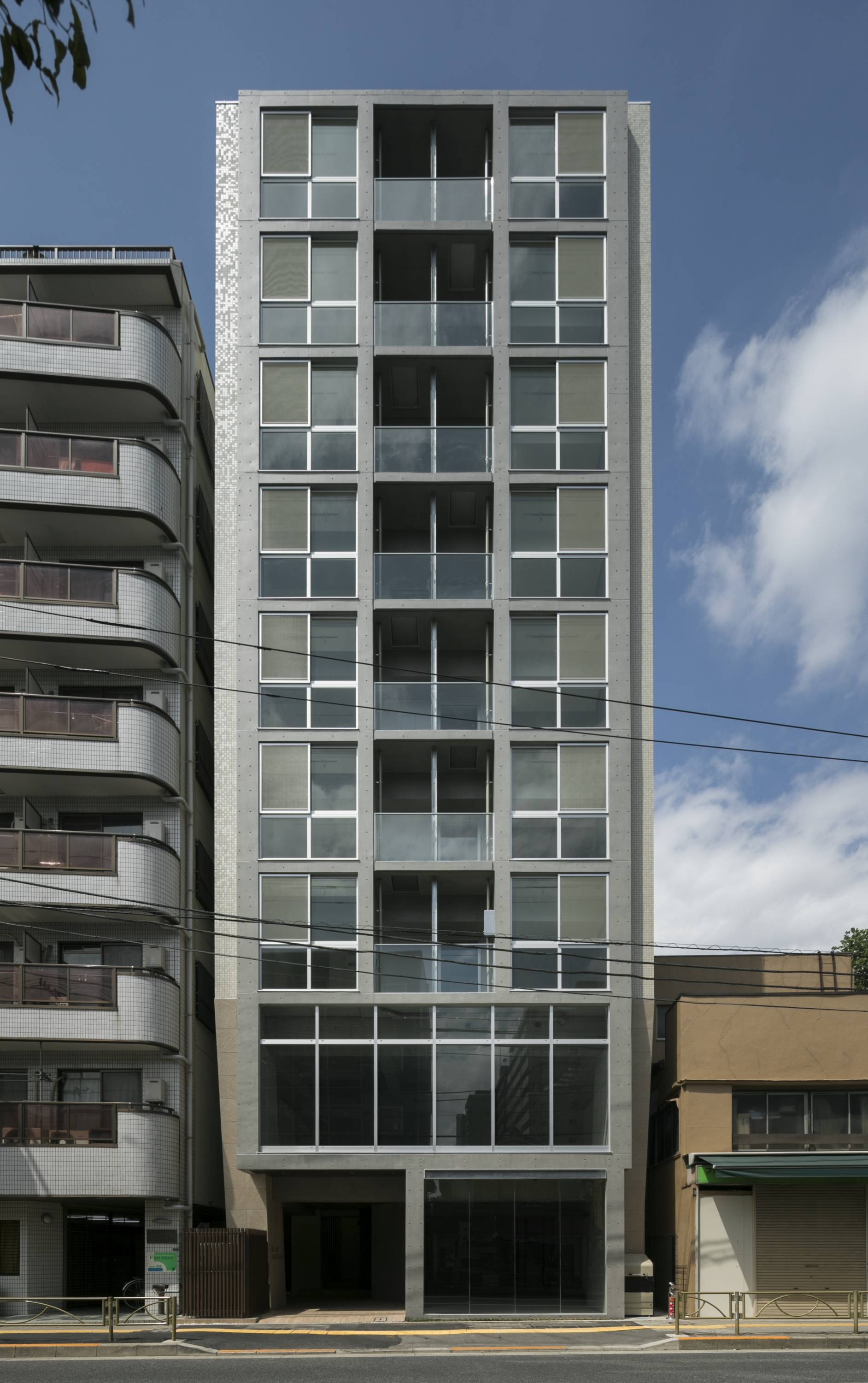 上層部分の住宅エリアもガラスを格子状にデザインし、低層部分との連続性を保ちながらも、貴賓のある外観デザインでスタイリッシュな住まいを演出しました。