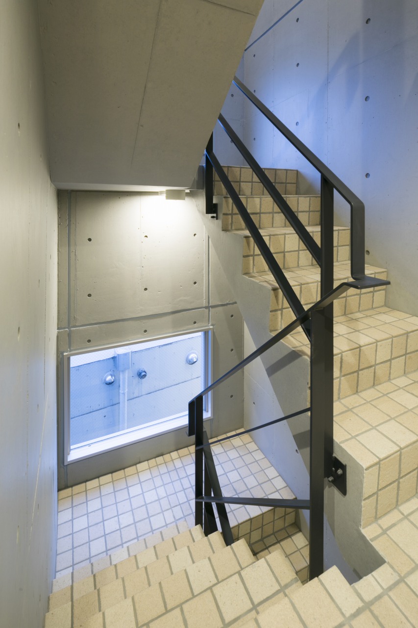 道路面に回ると、コンクリートとタイルで仕上げた緑道側とは異なる表情。